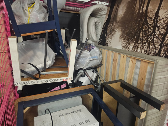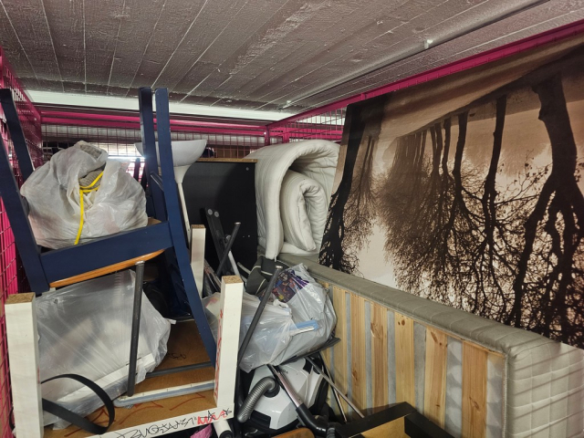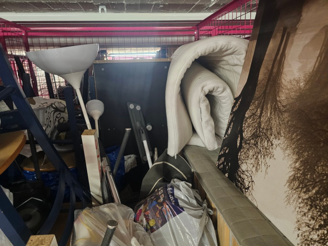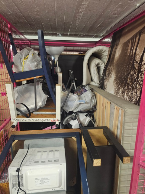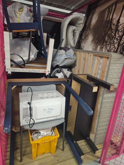 Myydään huutokaupalla kuvassa näkyvän varaston sisältö, vuokranantajan / haltijan lukuun.
