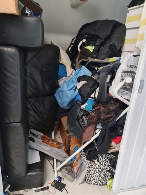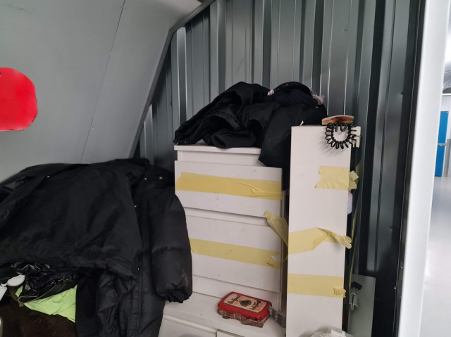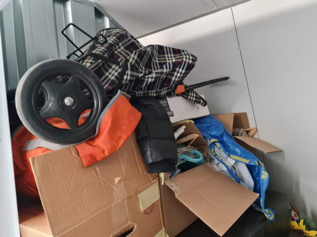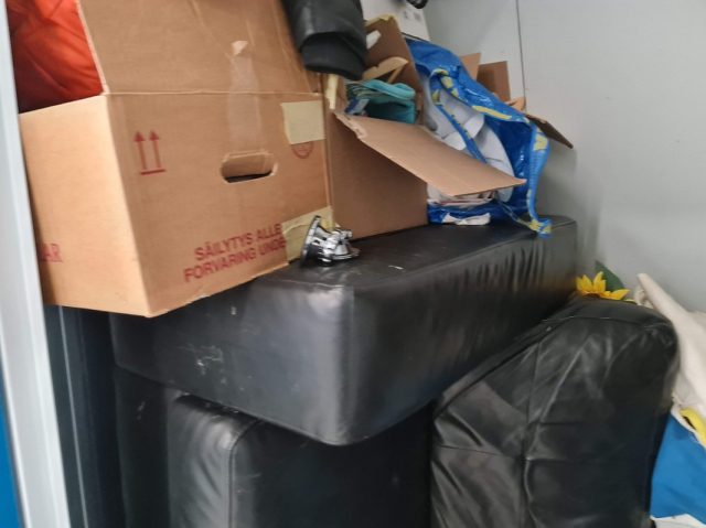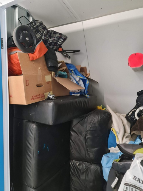Myydään huutokaupalla kuvassa näkyvän varaston sisältö, vuokranantajan / haltijan lukuun.