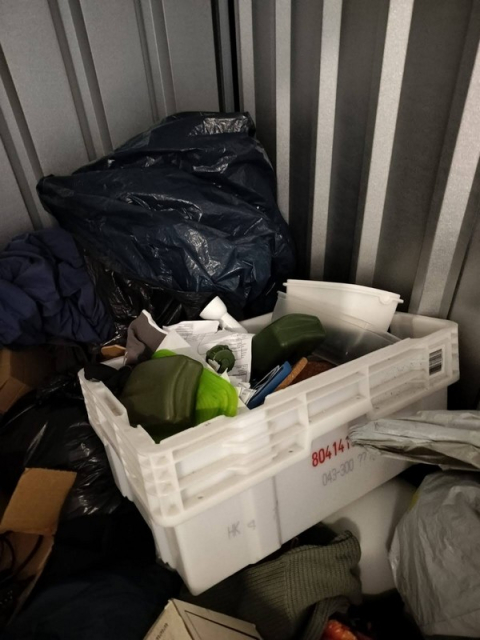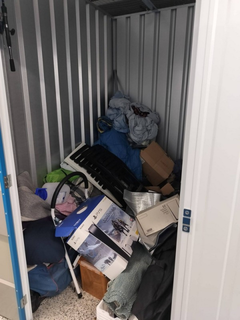 Myydään huutokaupalla kuvassa näkyvän varaston sisältö, vuokranantajan / haltijan lukuun.