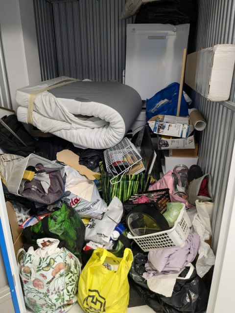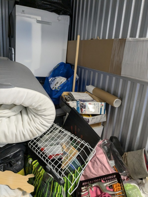 Myydään huutokaupalla kuvassa näkyvän varaston sisältö, vuokranantajan / haltijan lukuun.