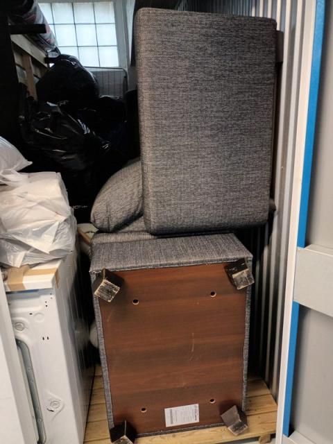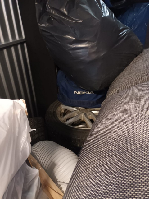 Myydään huutokaupalla kuvassa näkyvän varaston sisältö, vuokranantajan / haltijan lukuun.