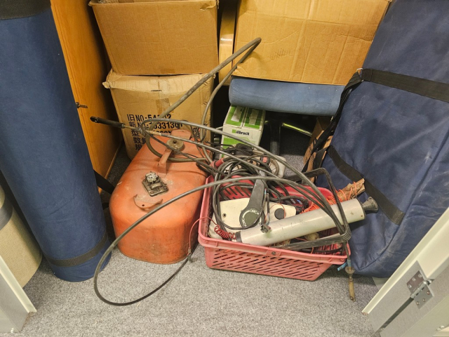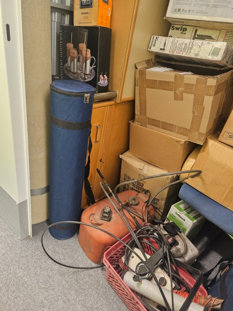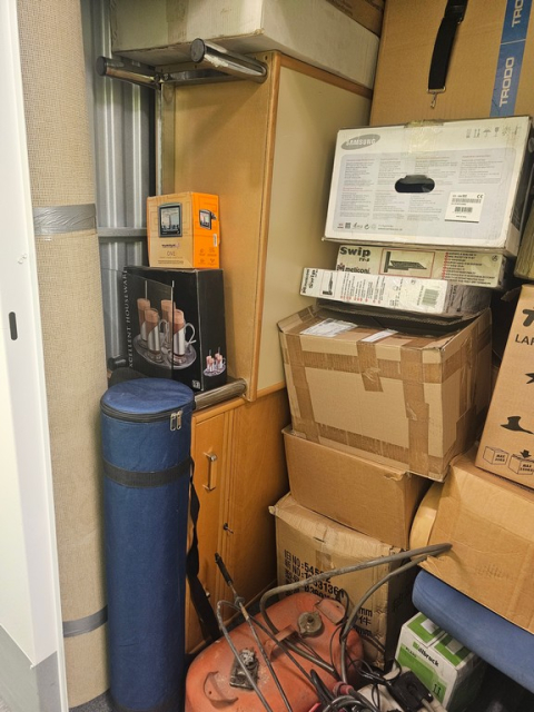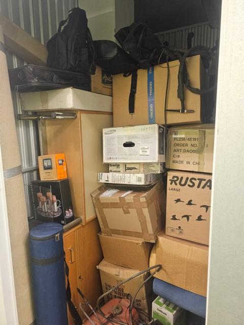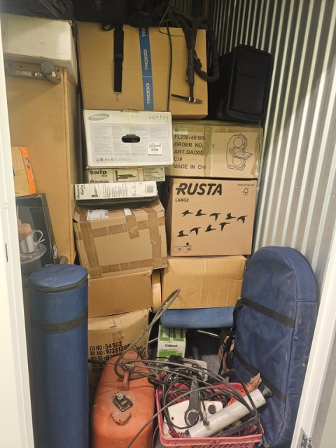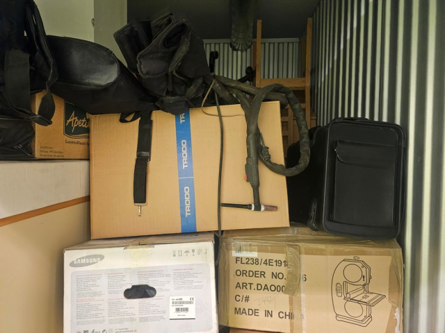 Myydään huutokaupalla kuvassa näkyvän varaston sisältö, vuokranantajan / haltijan lukuun.