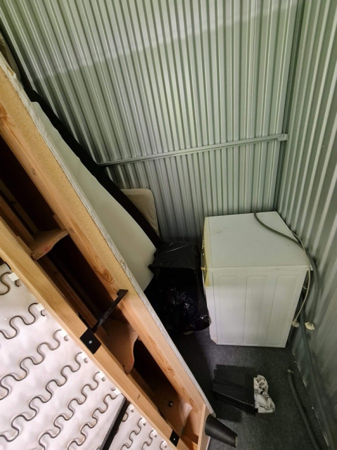 Myydään huutokaupalla kuvassa näkyvän varaston sisältö, vuokranantajan / haltijan lukuun.