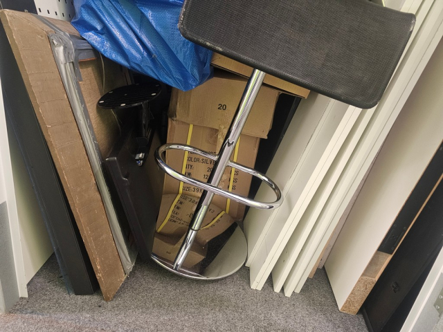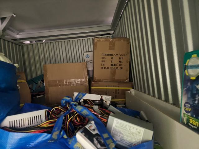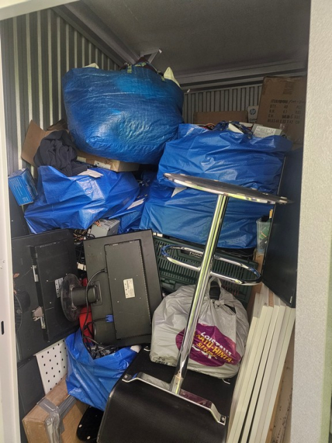 Myydään huutokaupalla kuvassa näkyvän varaston sisältö, vuokranantajan / haltijan lukuun.