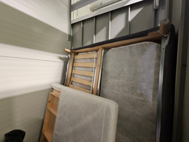 Myydään huutokaupalla kuvassa näkyvän varaston sisältö, vuokranantajan / haltijan lukuun.