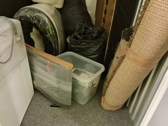 Myydään huutokaupalla kuvassa näkyvän varaston sisältö, vuokranantajan / haltijan lukuun.