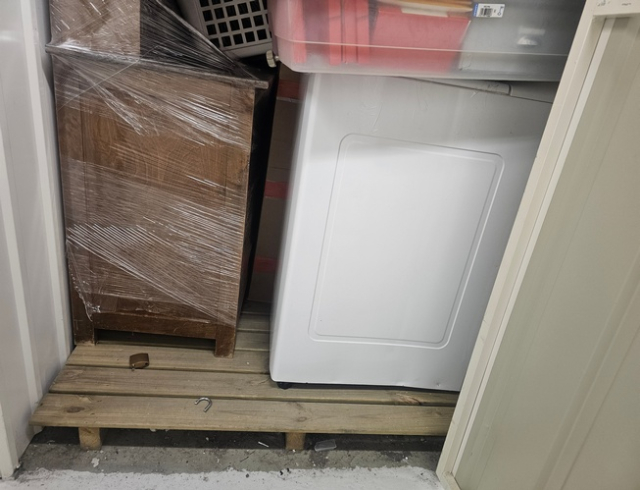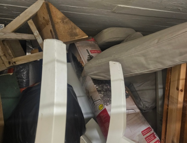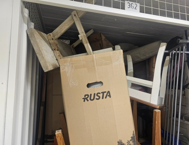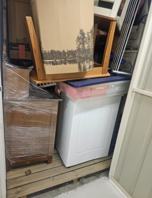 Myydään huutokaupalla kuvassa näkyvän varaston sisältö, vuokranantajan / haltijan lukuun.