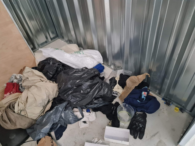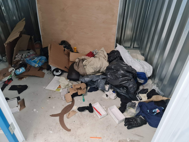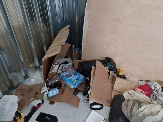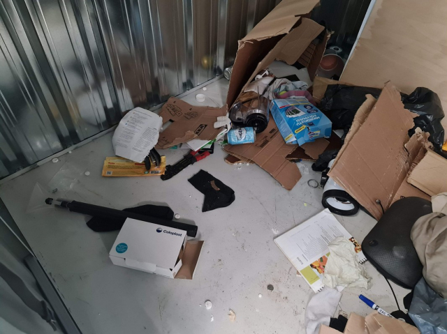 Myydään huutokaupalla kuvassa näkyvän varaston sisältö, vuokranantajan / haltijan lukuun.