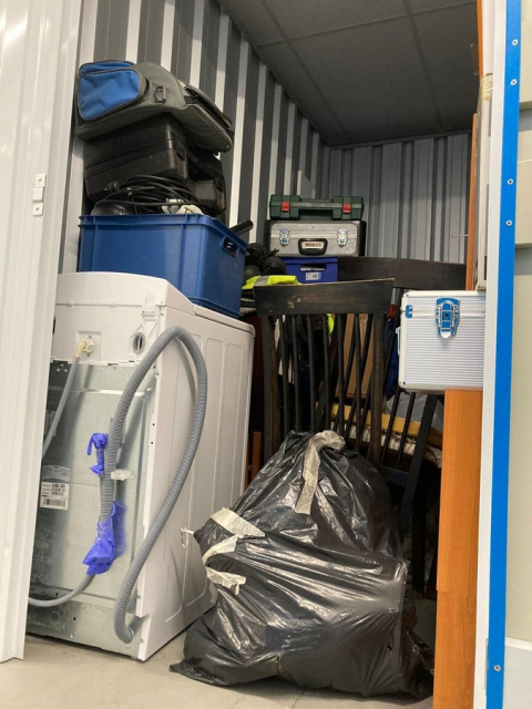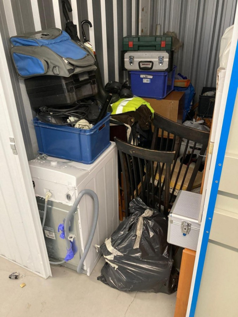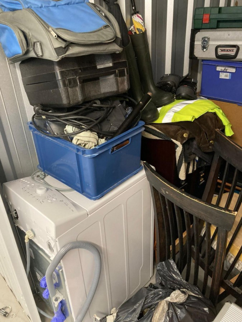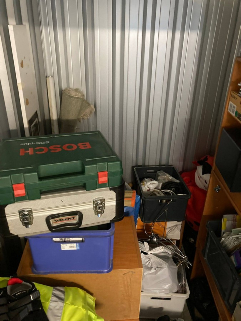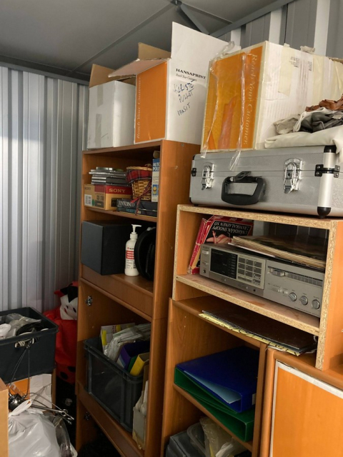 Myydään huutokaupalla kuvassa näkyvän varaston sisältö, vuokranantajan / haltijan lukuun.