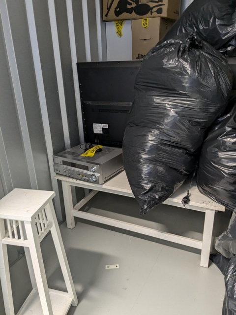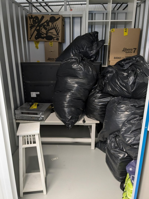 Myydään huutokaupalla kuvassa näkyvän varaston sisältö, vuokranantajan / haltijan lukuun.