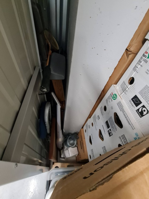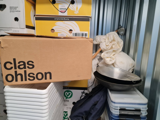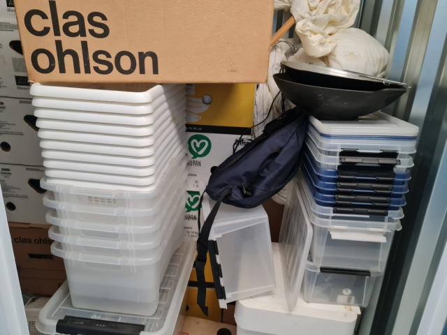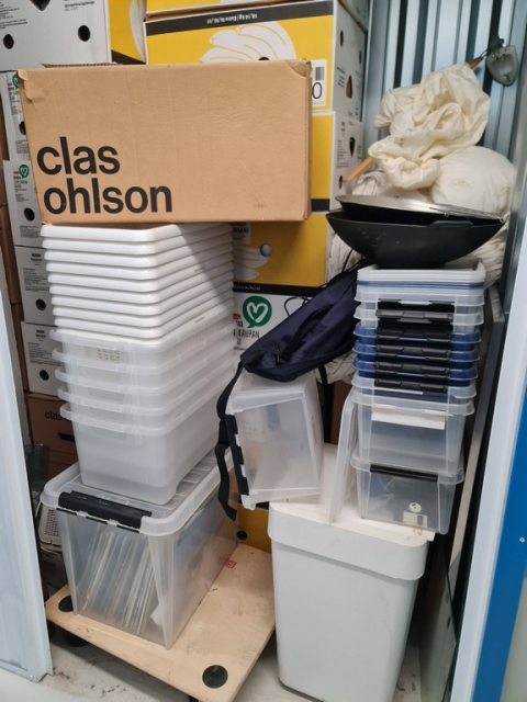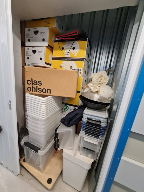 Myydään huutokaupalla kuvassa näkyvän varaston sisältö, vuokranantajan / haltijan lukuun.
