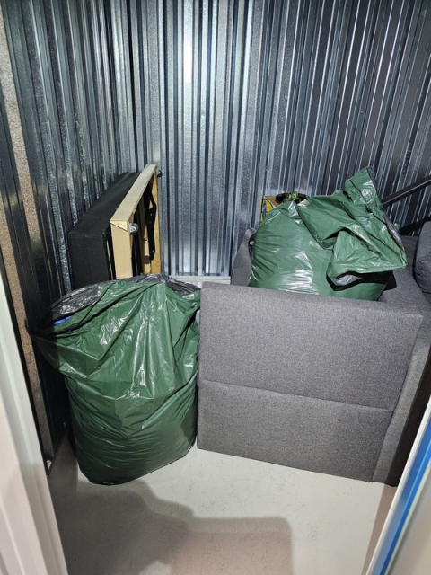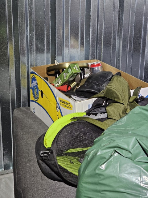 Myydään huutokaupalla kuvassa näkyvän varaston sisältö, vuokranantajan / haltijan lukuun.