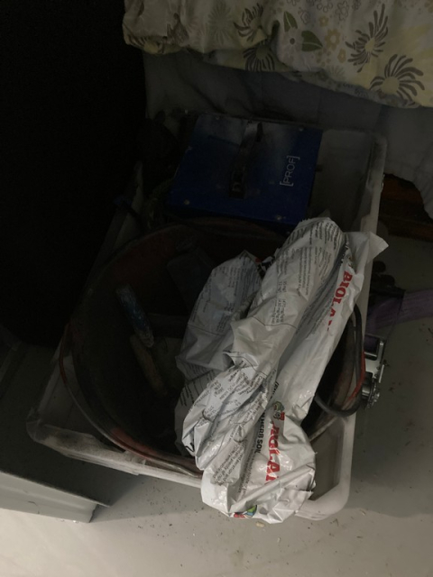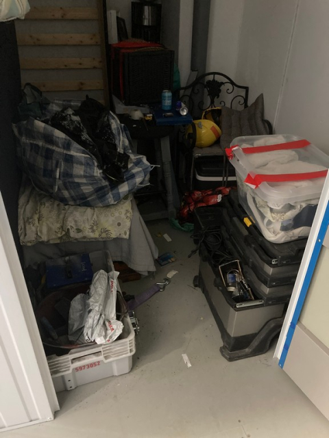Myydään huutokaupalla kuvassa näkyvän varaston sisältö, vuokranantajan / haltijan lukuun.