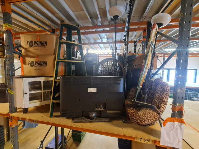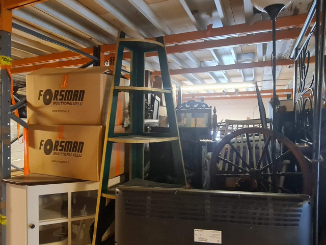 Myydään huutokaupalla kuvassa näkyvän varaston sisältö, vuokranantajan / haltijan lukuun.