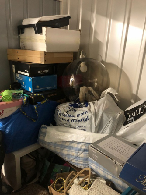 Myydään huutokaupalla kuvassa näkyvän varaston sisältö, vuokranantajan / haltijan lukuun.
