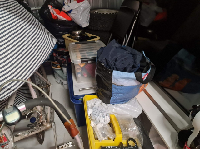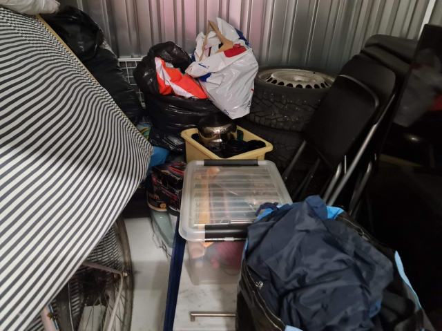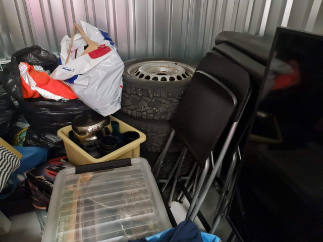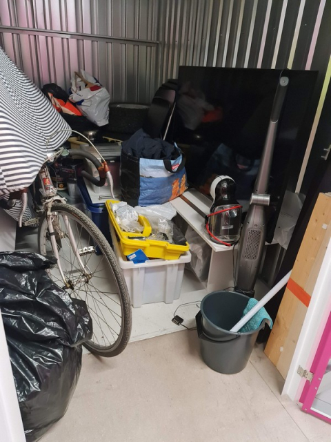 Myydään huutokaupalla kuvassa näkyvän varaston sisältö, vuokranantajan / haltijan lukuun.