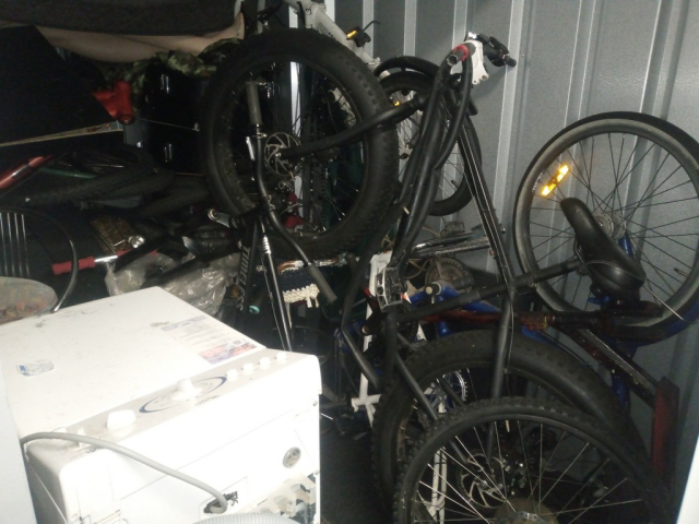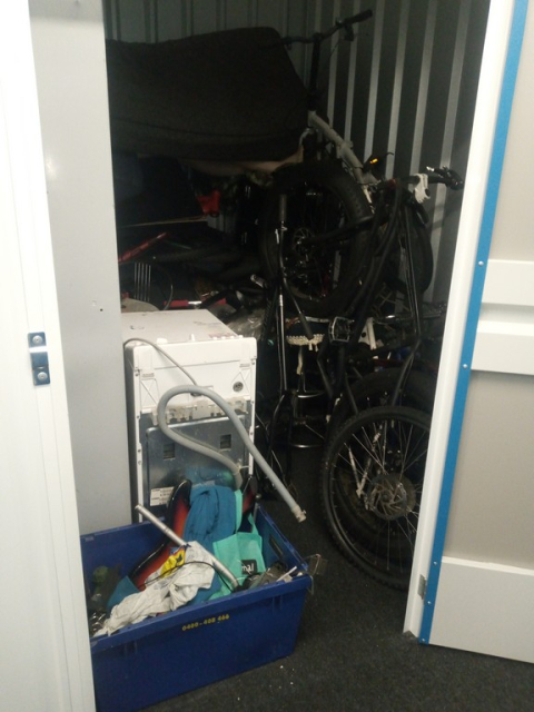 Myydään huutokaupalla kuvassa näkyvän varaston sisältö, vuokranantajan / haltijan lukuun.