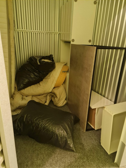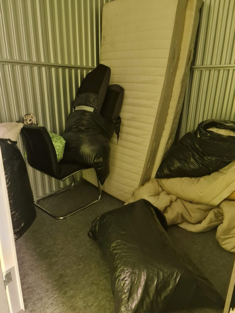 Myydään huutokaupalla kuvassa näkyvän varaston sisältö, vuokranantajan / haltijan lukuun.