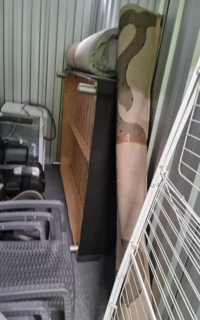 Myydään huutokaupalla kuvassa näkyvän varaston sisältö, vuokranantajan / haltijan lukuun.