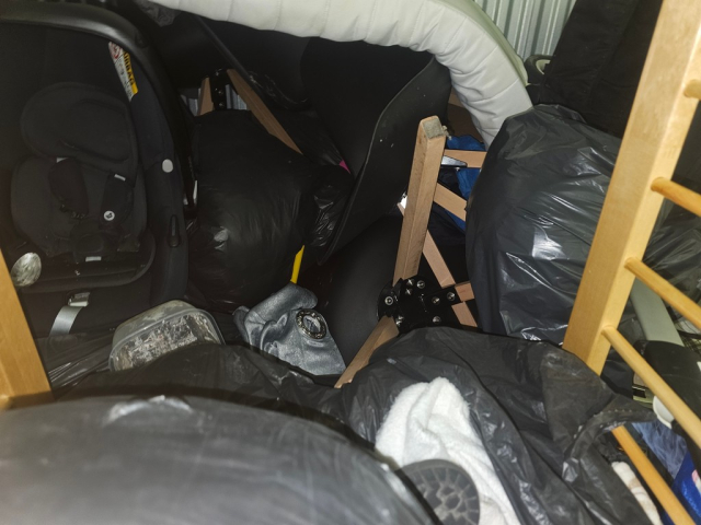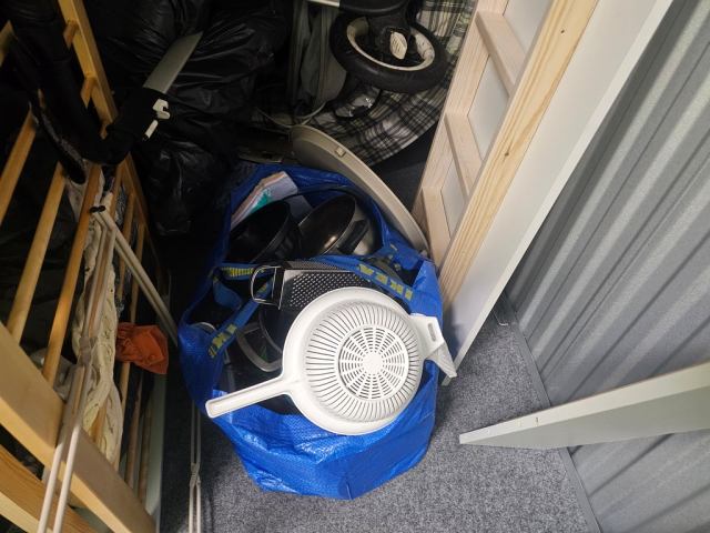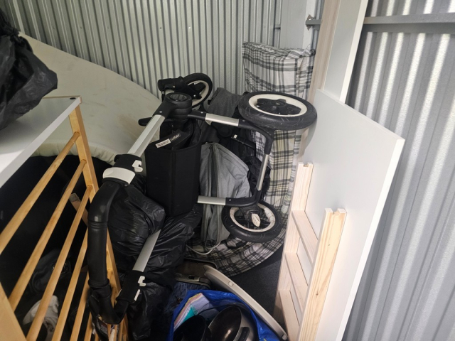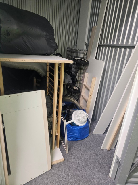 Myydään huutokaupalla kuvassa näkyvän varaston sisältö, vuokranantajan / haltijan lukuun.