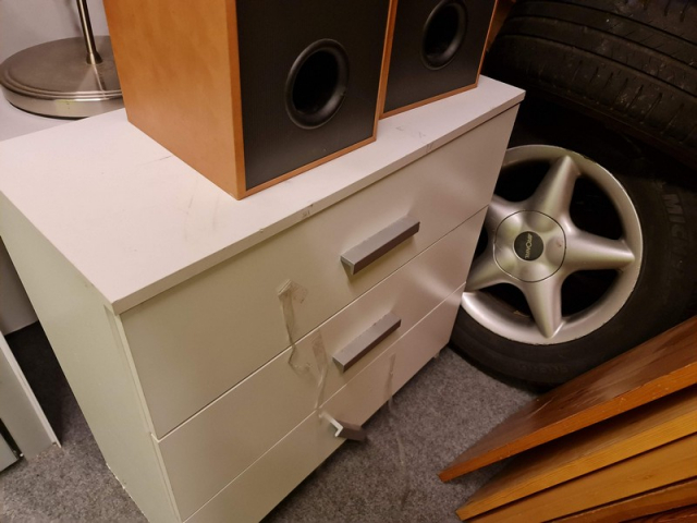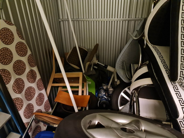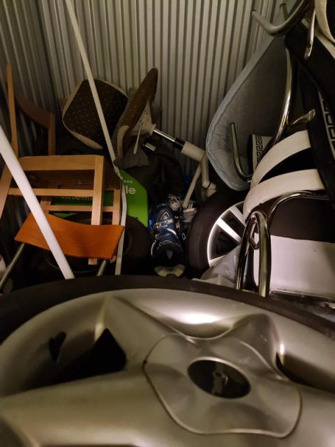 Myydään huutokaupalla kuvassa näkyvän varaston sisältö, vuokranantajan / haltijan lukuun.