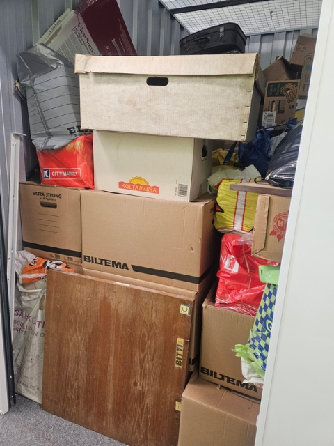 Myydään huutokaupalla kuvassa näkyvän varaston sisältö, vuokranantajan / haltijan lukuun.