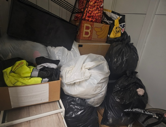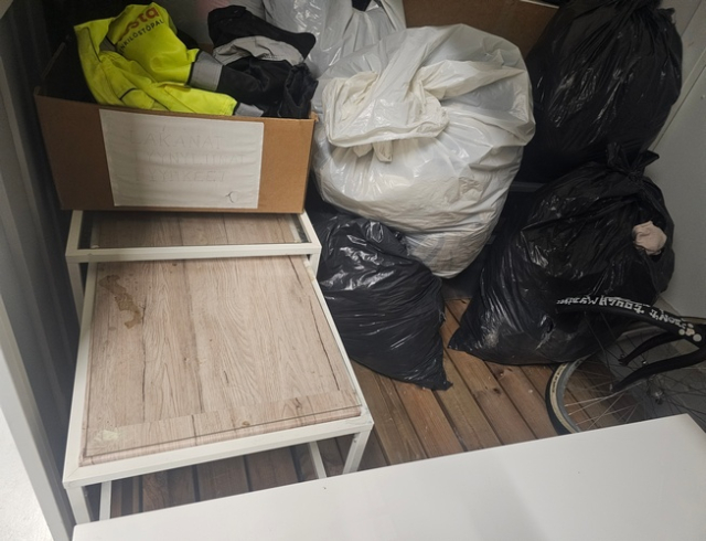 Myydään huutokaupalla kuvassa näkyvän varaston sisältö, vuokranantajan / haltijan lukuun.