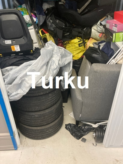 Myydään huutokaupalla kuvassa näkyvän varaston sisältö, vuokranantajan / haltijan lukuun.