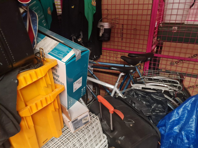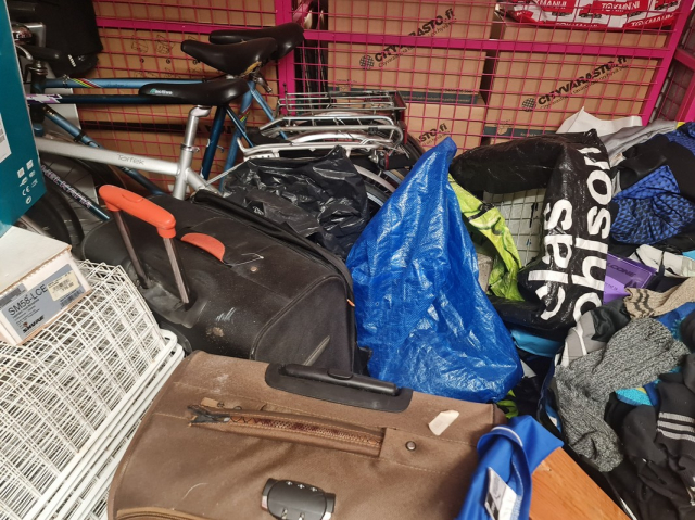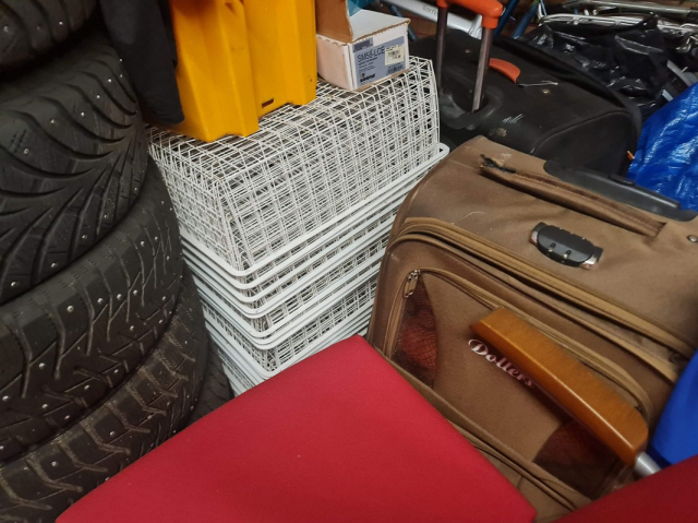 Myydään huutokaupalla kuvassa näkyvän varaston sisältö, vuokranantajan / haltijan lukuun.