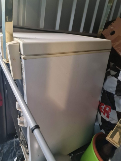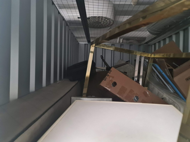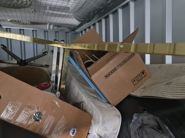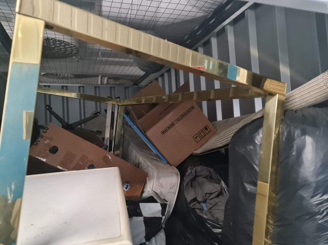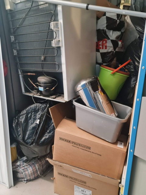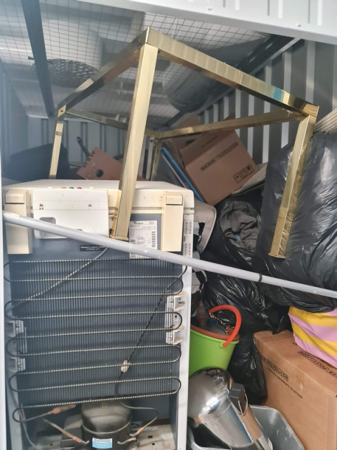 Myydään huutokaupalla kuvassa näkyvän varaston sisältö, vuokranantajan / haltijan lukuun.