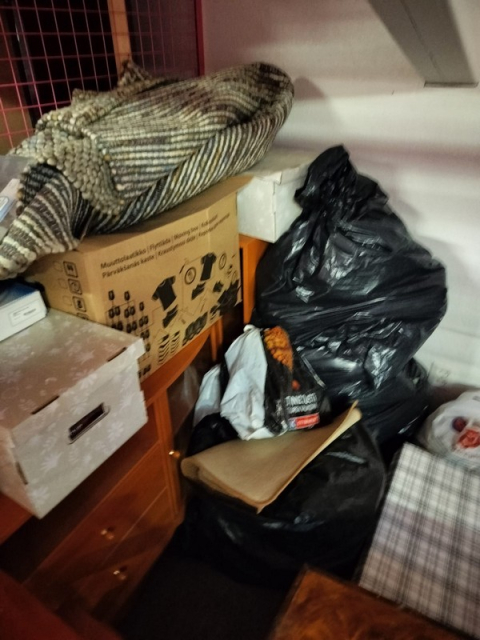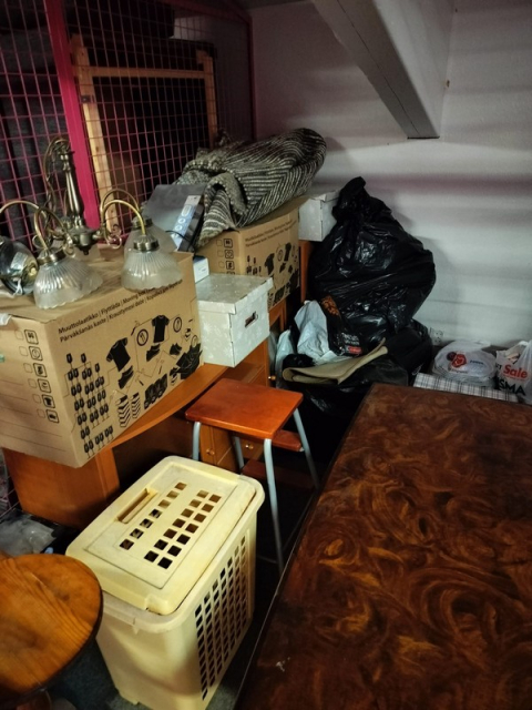 Myydään huutokaupalla kuvassa näkyvän varaston sisältö, vuokranantajan / haltijan lukuun.