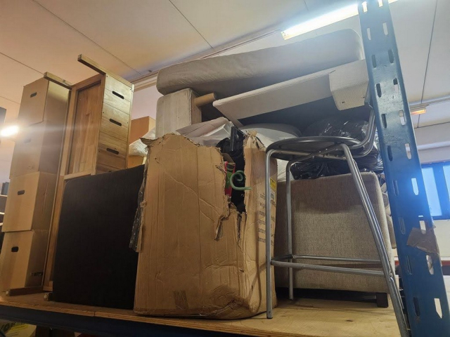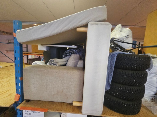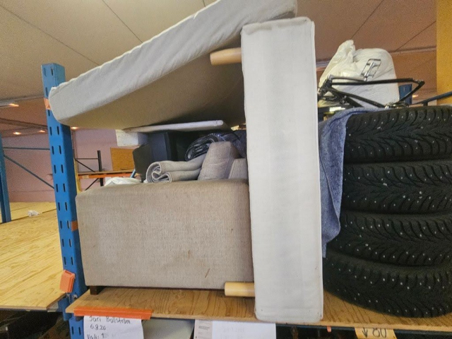 Myydään huutokaupalla kuvassa näkyvän varaston sisältö, vuokranantajan / haltijan lukuun.