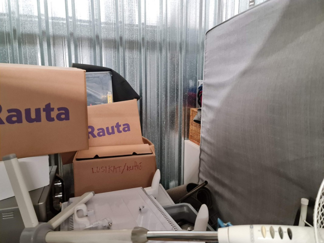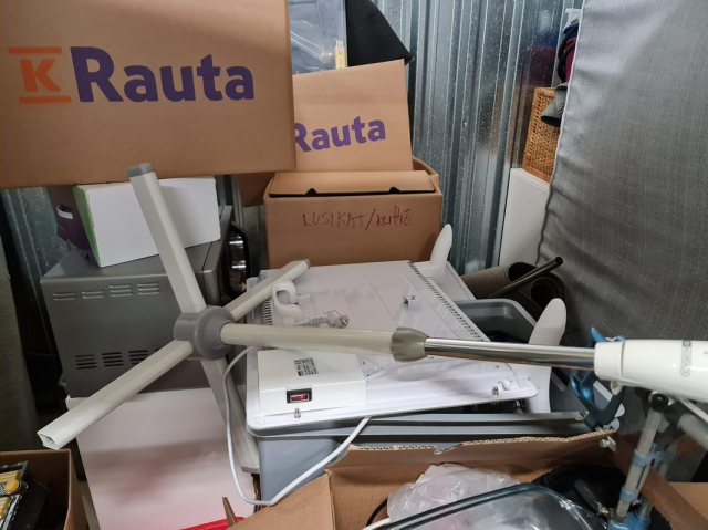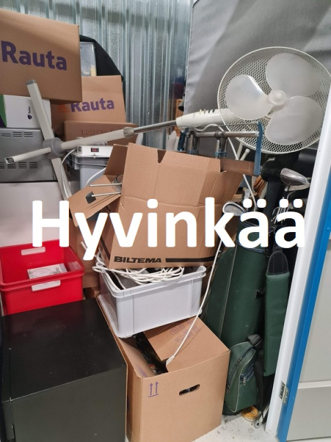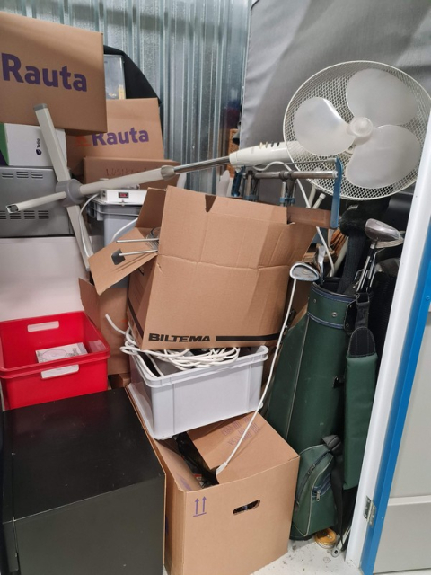 Myydään huutokaupalla kuvassa näkyvät varaston tavarat , vuokranantajan / haltijan lukuun.