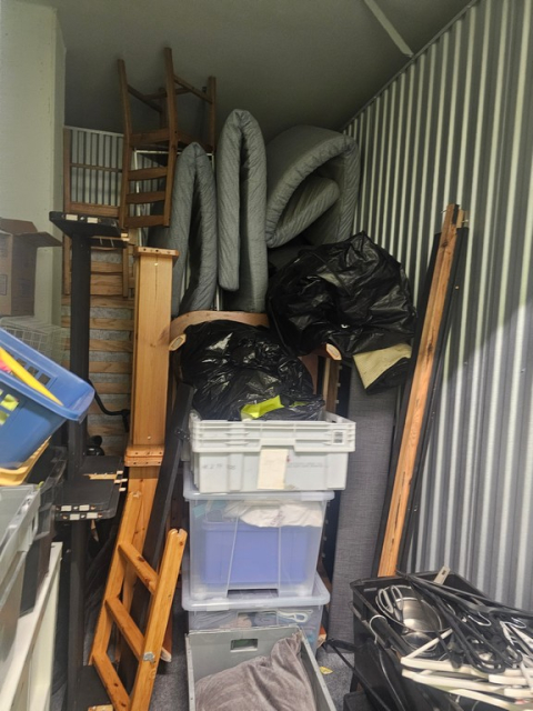 Myydään huutokaupalla kuvassa näkyvän varaston sisältö, vuokranantajan / haltijan lukuun.