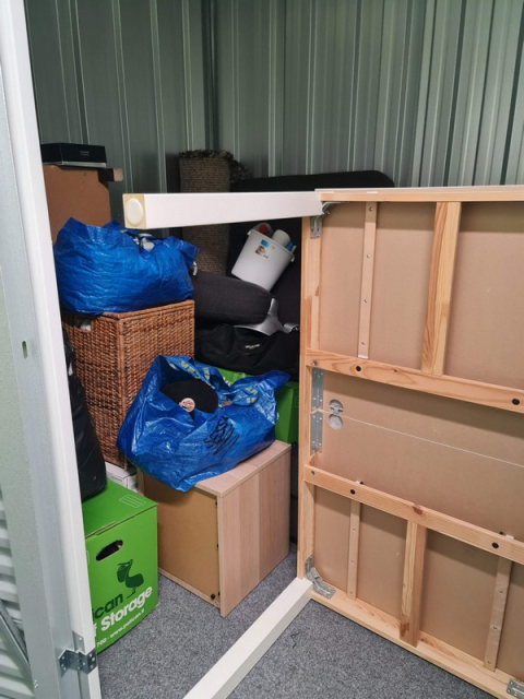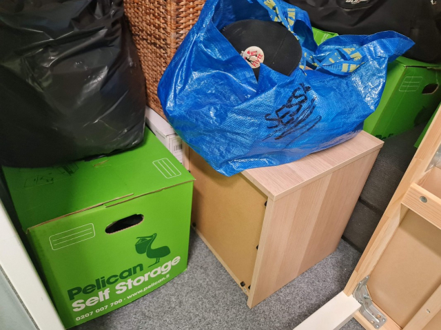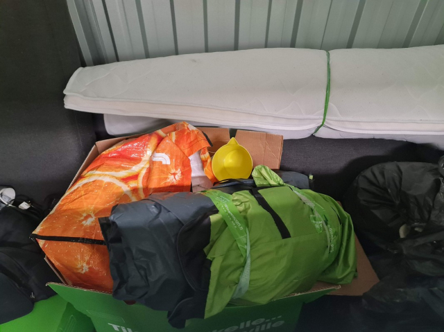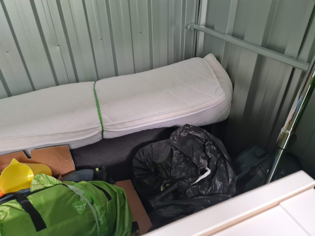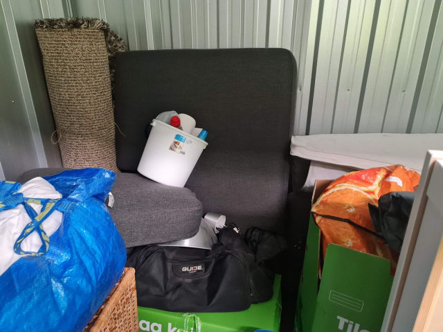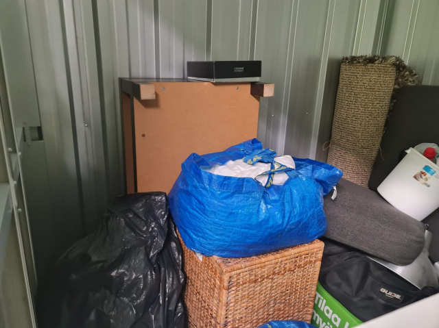 Myydään huutokaupalla kuvassa näkyvän varaston sisältö, vuokranantajan / haltijan lukuun.