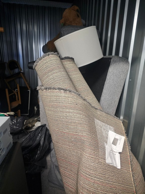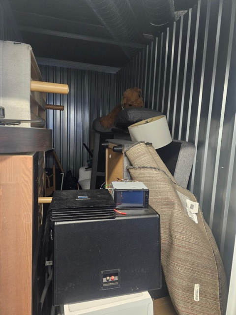 Myydään huutokaupalla kuvassa näkyvän varaston sisältö, vuokranantajan / haltijan lukuun.