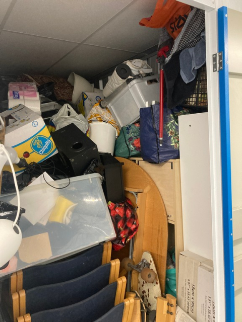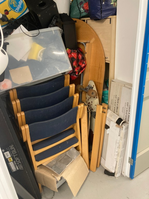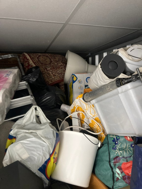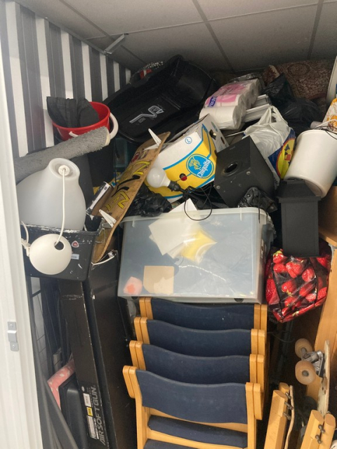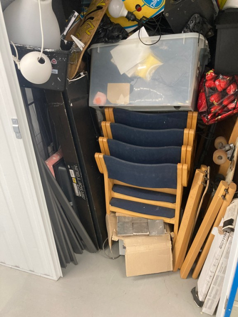 Myydään huutokaupalla kuvassa näkyvän varaston sisältö, vuokranantajan / haltijan lukuun.
