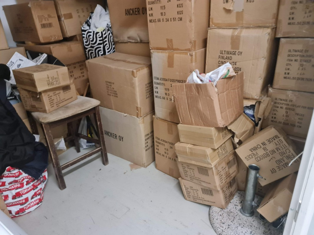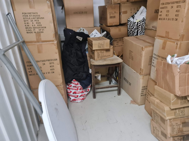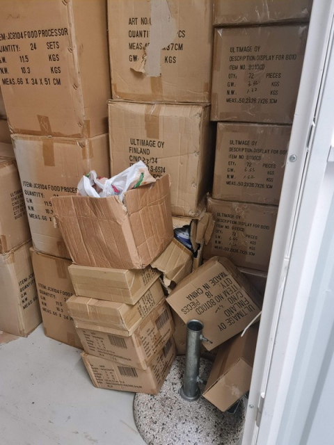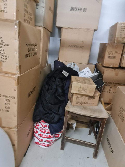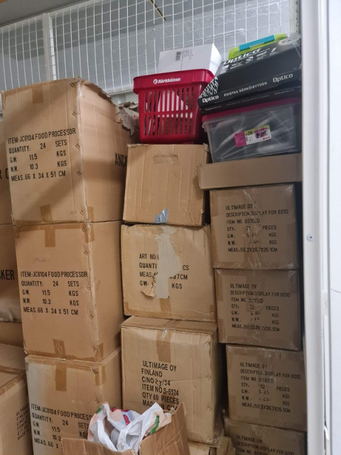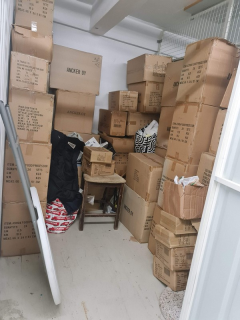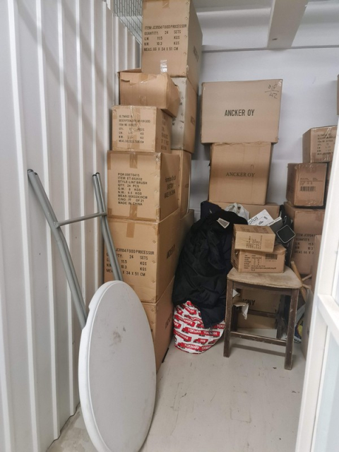 Myydään huutokaupalla kuvassa näkyvän varaston sisältö, vuokranantajan / haltijan lukuun.
