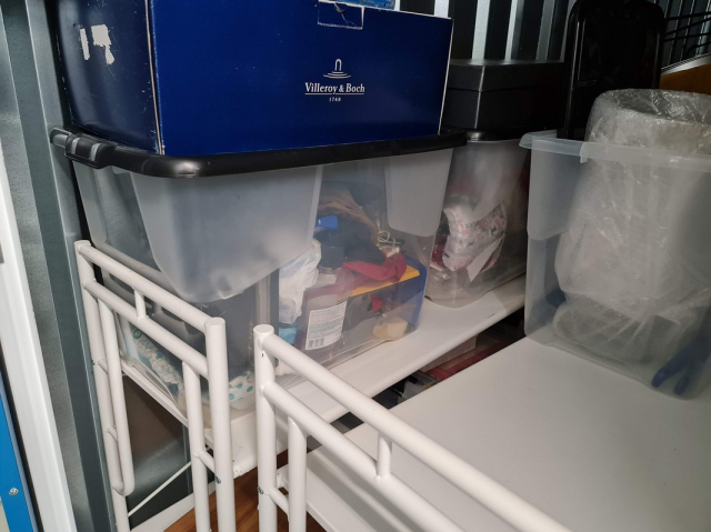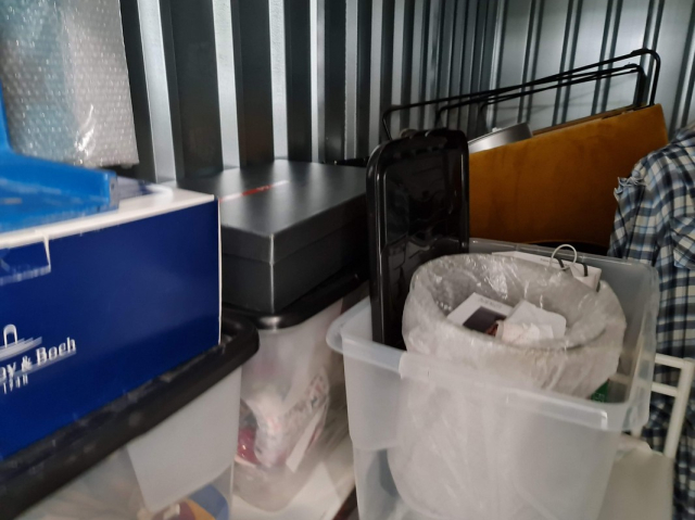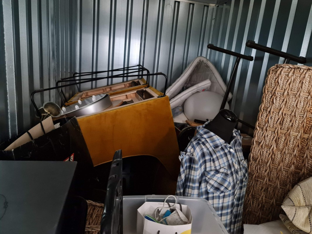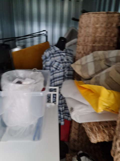 Myydään huutokaupalla kuvassa näkyvän varaston sisältö, vuokranantajan / haltijan lukuun.