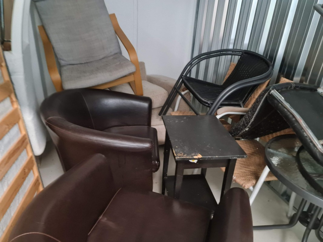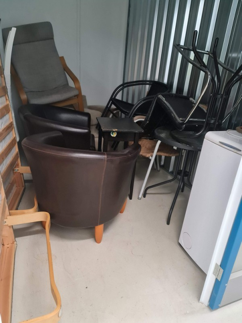 Myydään huutokaupalla kuvassa näkyvän varaston sisältö, vuokranantajan / haltijan lukuun.