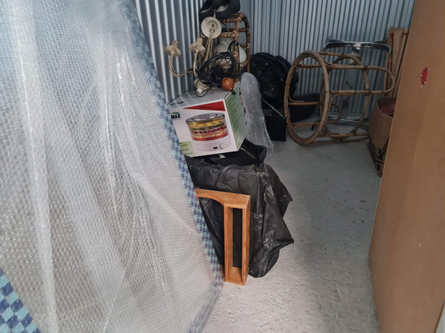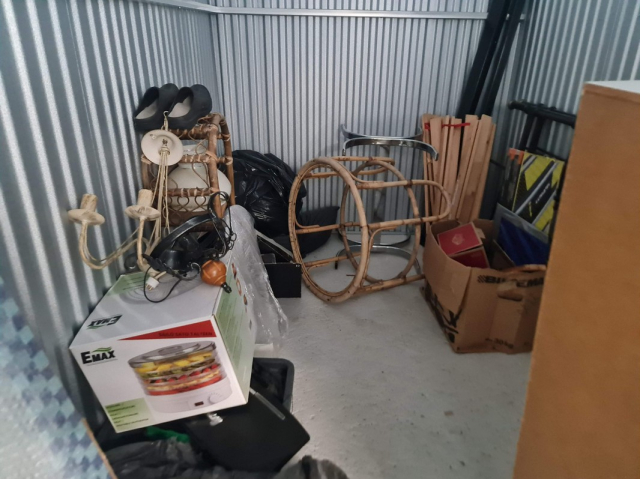 Myydään huutokaupalla kuvassa näkyvän varaston sisältö, vuokranantajan / haltijan lukuun.