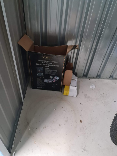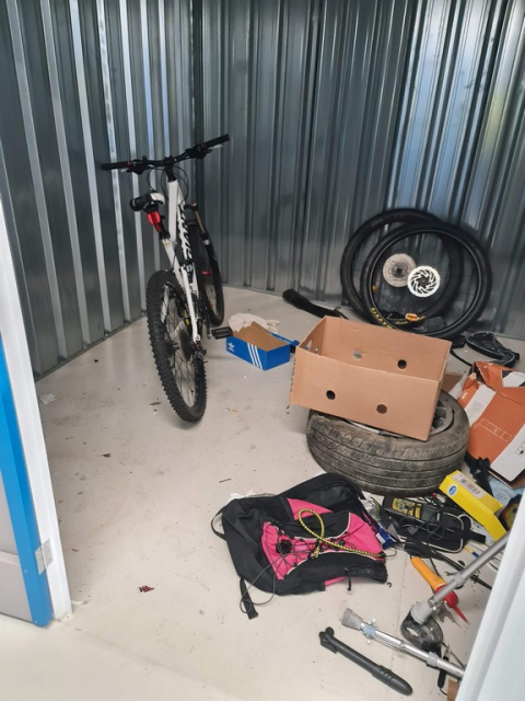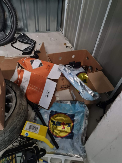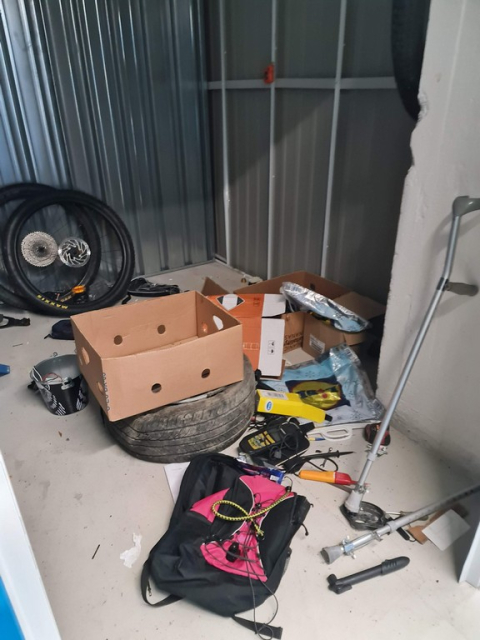 Myydään huutokaupalla kuvassa näkyvän varaston sisältö, vuokranantajan / haltijan lukuun.