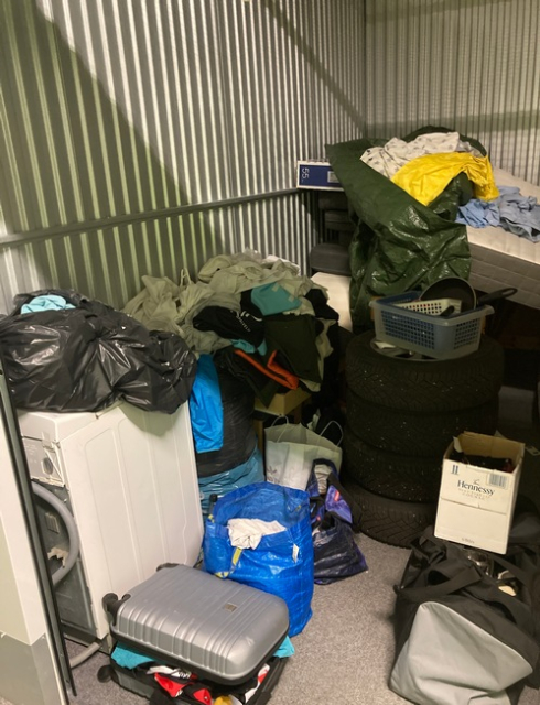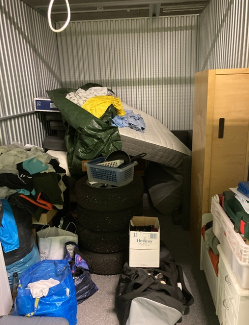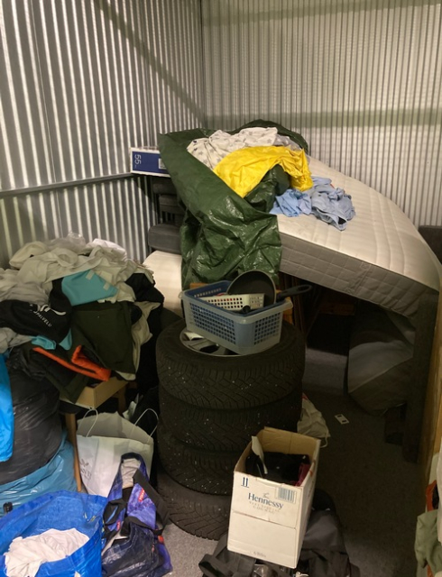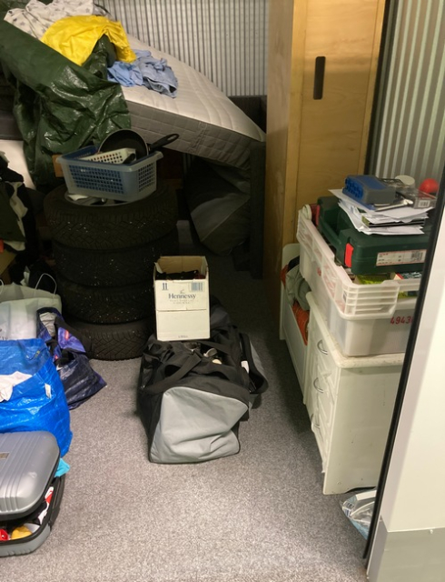 Myydään huutokaupalla kuvassa näkyvän varaston sisältö, vuokranantajan / haltijan lukuun.