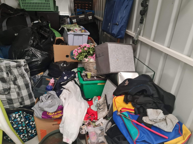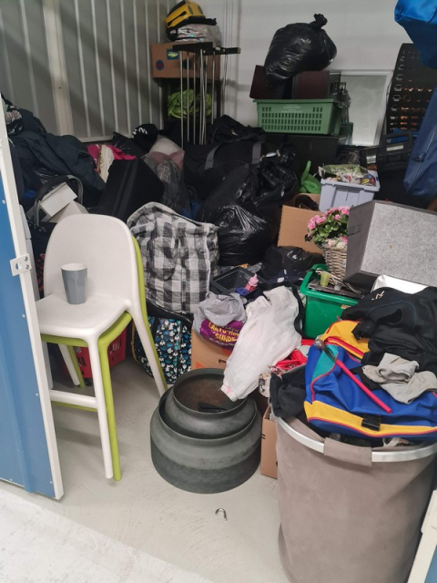 Myydään huutokaupalla kuvassa näkyvän varaston sisältö, vuokranantajan / haltijan lukuun.