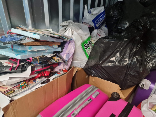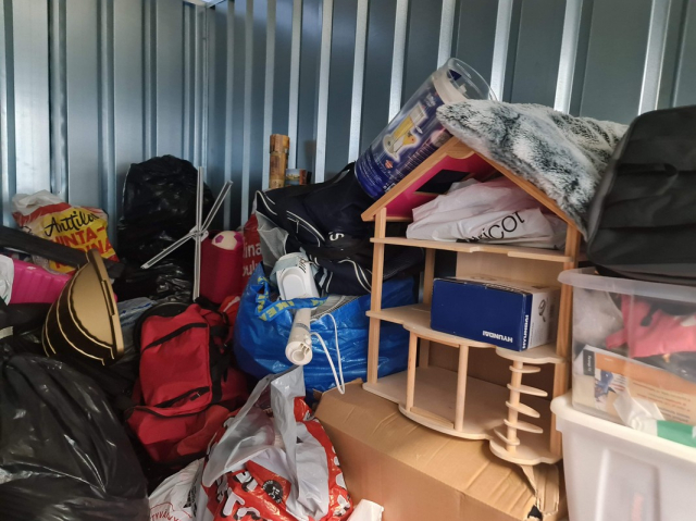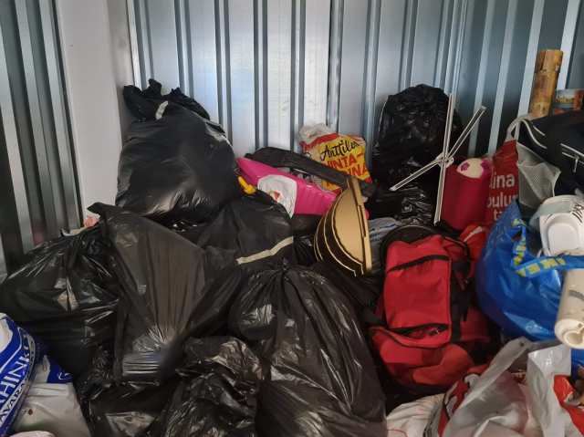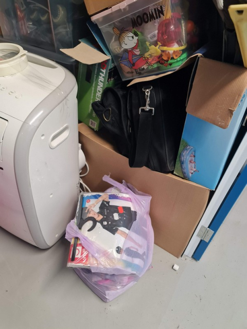 Myydään huutokaupalla kuvassa näkyvän varaston sisältö, vuokranantajan / haltijan lukuun.