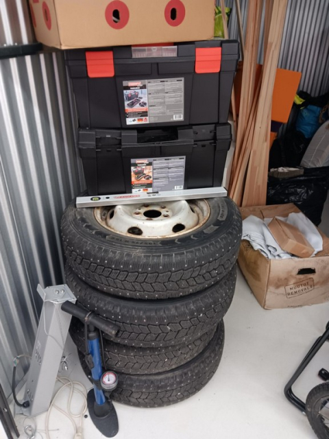 Myydään huutokaupalla kuvassa näkyvän varaston sisältö, vuokranantajan / haltijan lukuun.