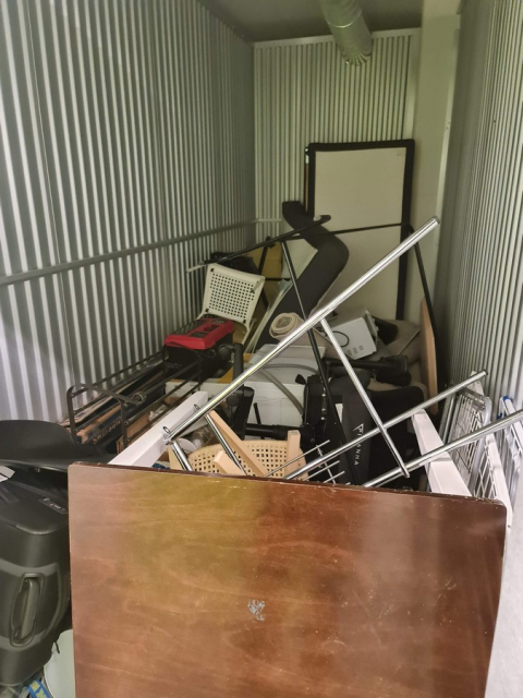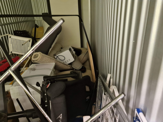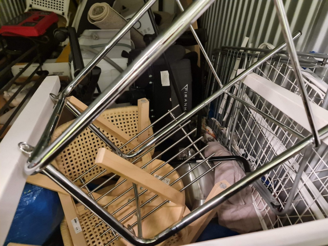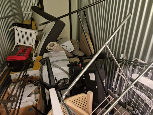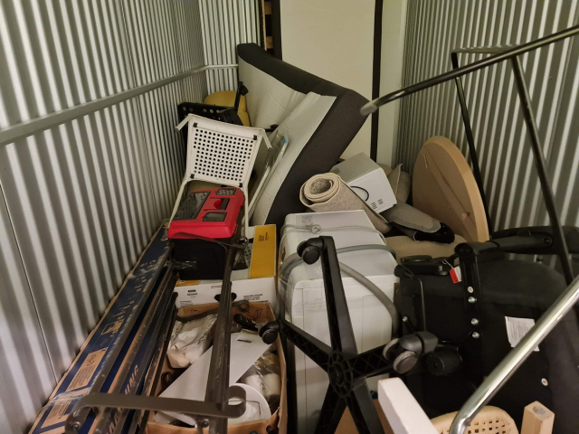 Myydään huutokaupalla kuvassa näkyvän varaston sisältö, vuokranantajan / haltijan lukuun.