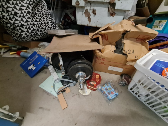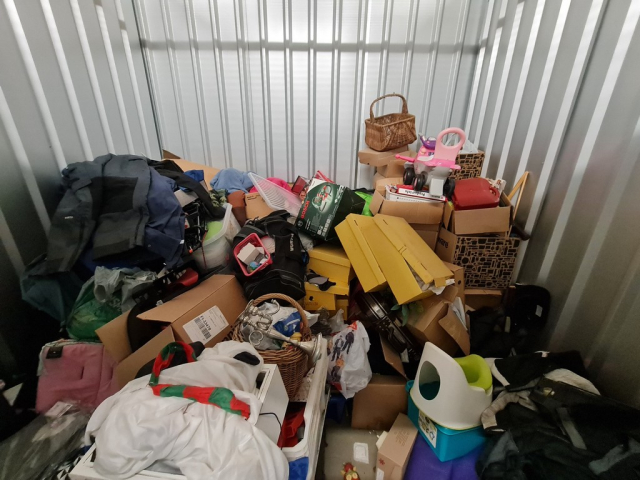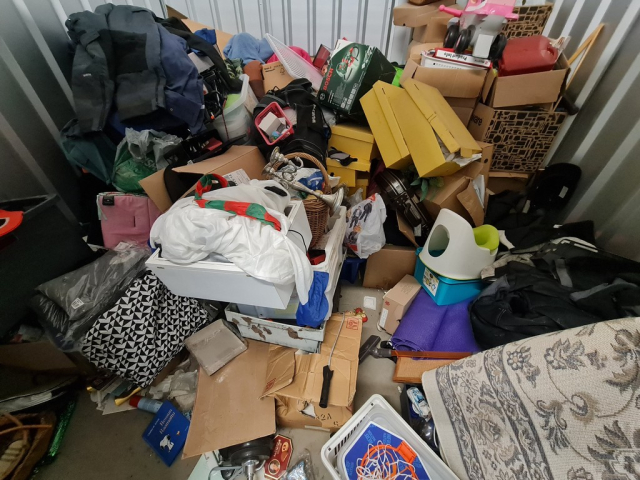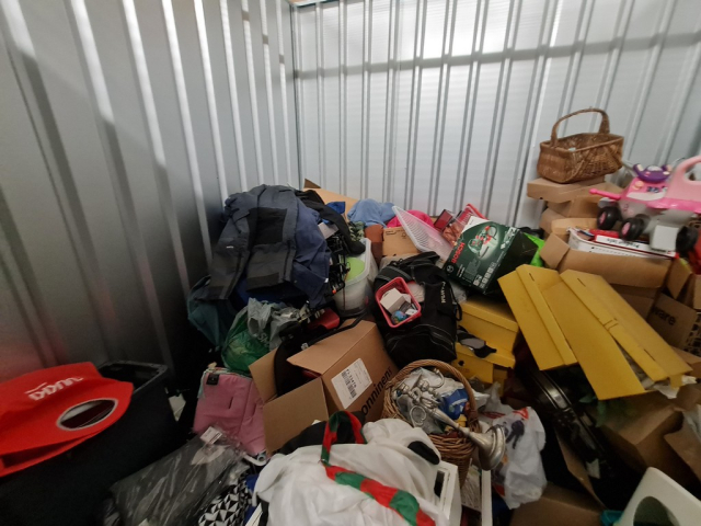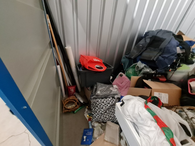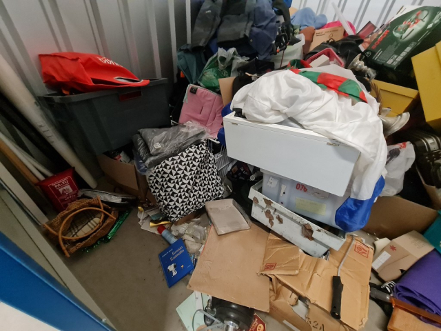 Myydään huutokaupalla kuvassa näkyvän varaston sisältö, vuokranantajan / haltijan lukuun.