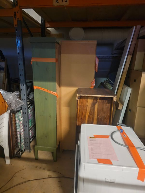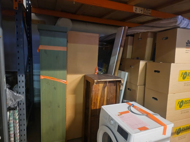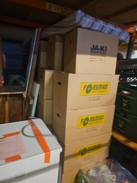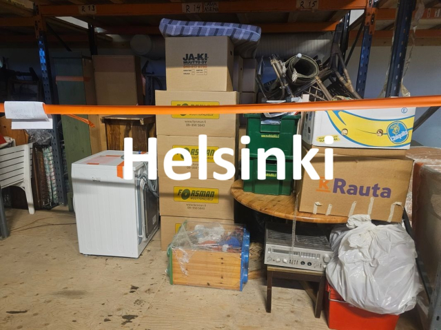 Myydään huutokaupalla kuvassa näkyvän varaston sisältö, vuokranantajan / haltijan lukuun.