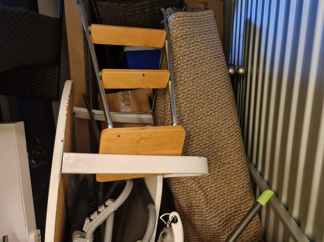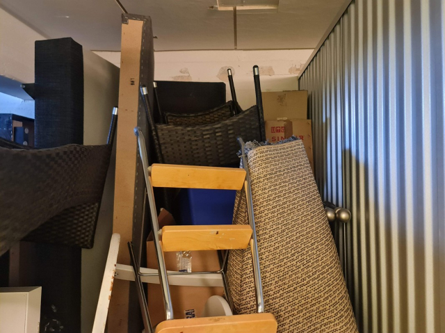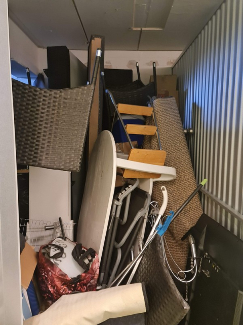 Myydään huutokaupalla kuvassa näkyvän varaston sisältö, vuokranantajan / haltijan lukuun.